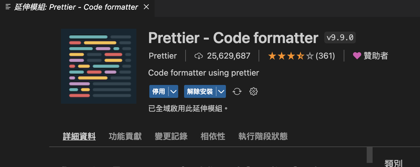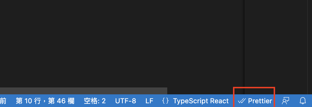裝完啟用後應該在資訊列會有prettier的圖示選項